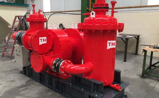 Versiunea completă (SIX) care include pompa de bază, amortizoarele de admisie și de presiune și dulapul electronic de control și reglare într-o singură unitate montată pe skid.